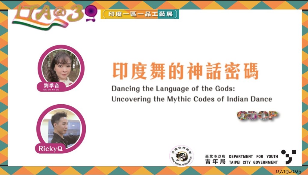 這場以「印度舞的神話密碼」為題的講座,由我們——「印度奇奇」的 Niki 與 Ricky 共同帶來。不同於單純的舞蹈欣賞,我們希望觀眾能理解:印度舞並不只是華麗的服飾、強烈的節奏或電影裡的誇張場面,而是承載著神話、哲學與宇宙觀的文化語言。