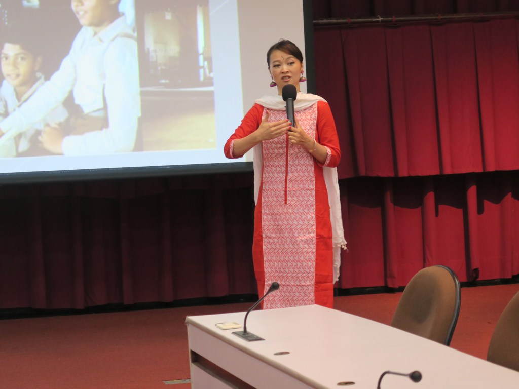 The tradition of telling stories in India is very ancient and creative; literature, performing art, and oral tradition are all the ways Indian people express life and emotion. I spent more minutes on warming up and opening. This page has not achieved my main topic. I am never worried that I am too talkative; after all, my topic on that day is about telling-stories. I took an example of Haridwar. The way we describe Haridwar’s environment is definitely different from the ways Indian people describe. The ways Indian people usually express is more poetic, mythic and full of stories. I like this space in the library. I was a dancer and got used to standing on big stage. Besides, the U-shaped room helps me to be closer with audience. Mudra , the hand gesture, is the one of tways of story-telling. Scripture, statues, paintings are all revealing interesting messages and stories. Actually, this is my hidden secret Sharing the video of Rasa-lila performed in Kathak dance.
