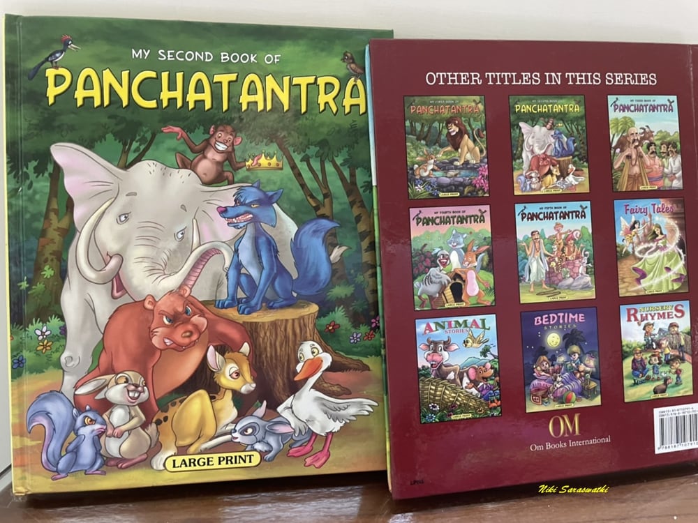 (右上)在德里書店購得的五卷書(Panchatantra),是古印度著名韻文寓言集,有許多小動物道德論的小故事內容。