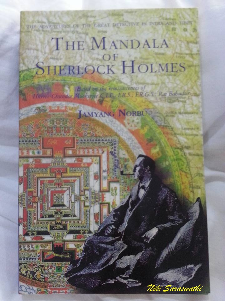 (左)在書蟲書店撈了一本有趣的偵探小說《福爾摩斯的曼荼羅》 (The Mandala of Sherlock Holmes),講述了福爾摩斯假扮挪威探險家,在印度與西藏巧遇達賴喇嘛的探險故事。
