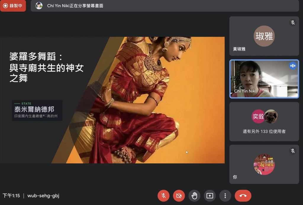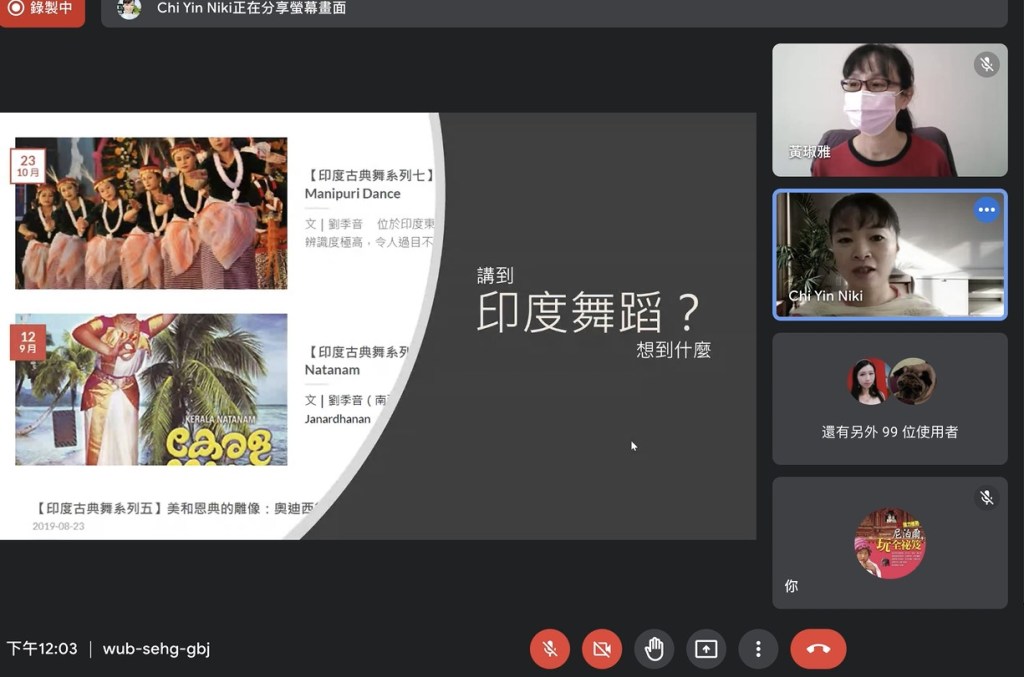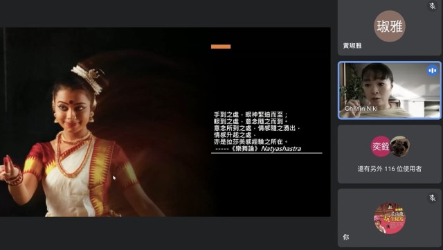 2021年底,因應主辦單位『組建台印學術鏈』、東華大學通識教育中心、以及台灣印度研究協會的共同邀約,針對東華大學師生進行了一場關於印度舞蹈的線上講座。