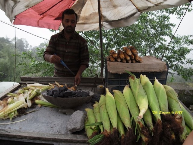 倘若正巧在市集附近,我會踩踏著積水,跑去買個最愛的烤玉米Bhutta。這是夏季的特產,我最愛的美味;每次厚臉皮的央求老闆,多用上一顆小檸檬,和著鹽,在碳烤好的玉米上用力刷上幾層。最樂乎趁著雨後的一時涼爽,享用起這熱呼呼街頭美食。