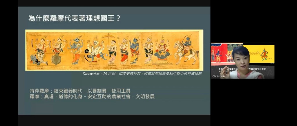 史詩《羅摩衍那》,作為印度與東南亞的核心共享文化,千年來,持續影響著當地文化傳承、倫理道德、生活儀式,與當代社會發展等眾多面向。本講座將探討,史詩中羅摩王的理想國王原型與人設,如何打破時間與空間的疆界,於當代社會、文化產業、表演藝術與政治外交上的種種影響與體現。