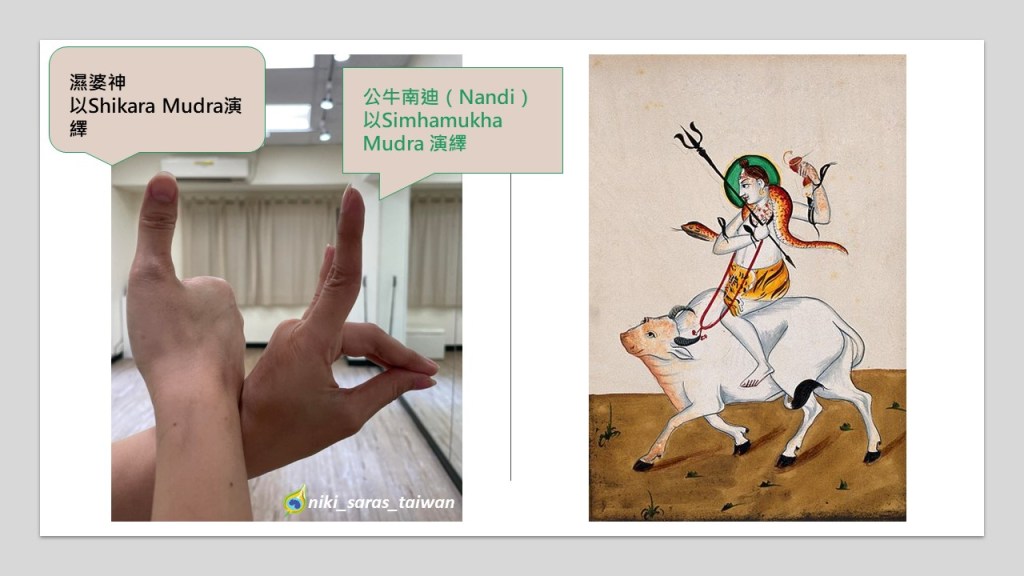 答案在這裡,文章最開頭的手印是詮釋『濕婆神與他的坐騎南迪』喔。
