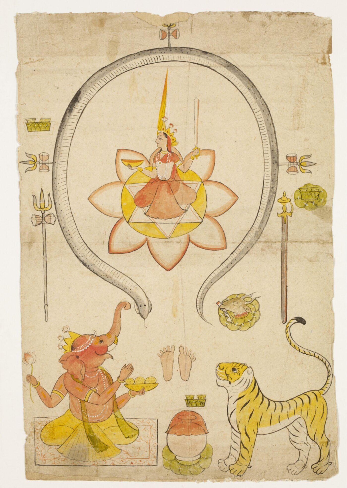 Shri Shri Durga,約1885–,源自印度西孟加拉邦、加爾各答,紙上彩色石印畫,目前收藏於美國大都會博物館。