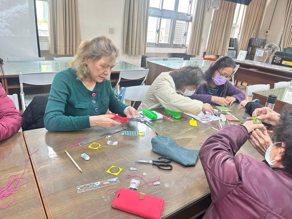 大甲國中美麗又有才的美術老師,製作Rakhi 手環美勞包,帶領學生動作製作。