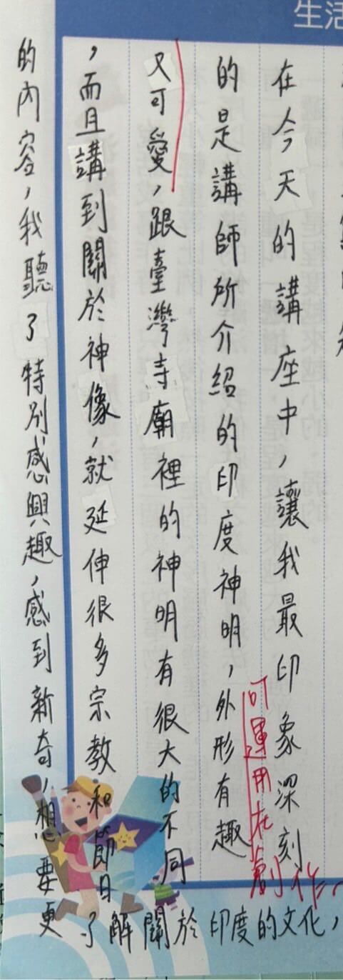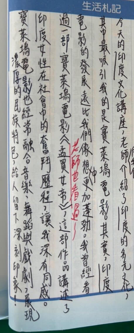 所幸,學生們的回應遠超乎我的期待。這群在媽祖信仰文化中成長的孩子們,對文化並不陌生。大甲國中的孩子們在校方的帶領下,不只讓家鄉的傳統文化時刻深入生活(大甲鎮瀾宮建醮時期,學校的營養午餐一週皆素食),也曾與印度德里的中學進行過姊妹校文化交流,用英語介紹大甲。這份親身參與的經驗,讓他們更容易理解所謂「信仰即為生活的一部分」,也讓我在聊印度的生活百態時,更能找到默契的共同語言。