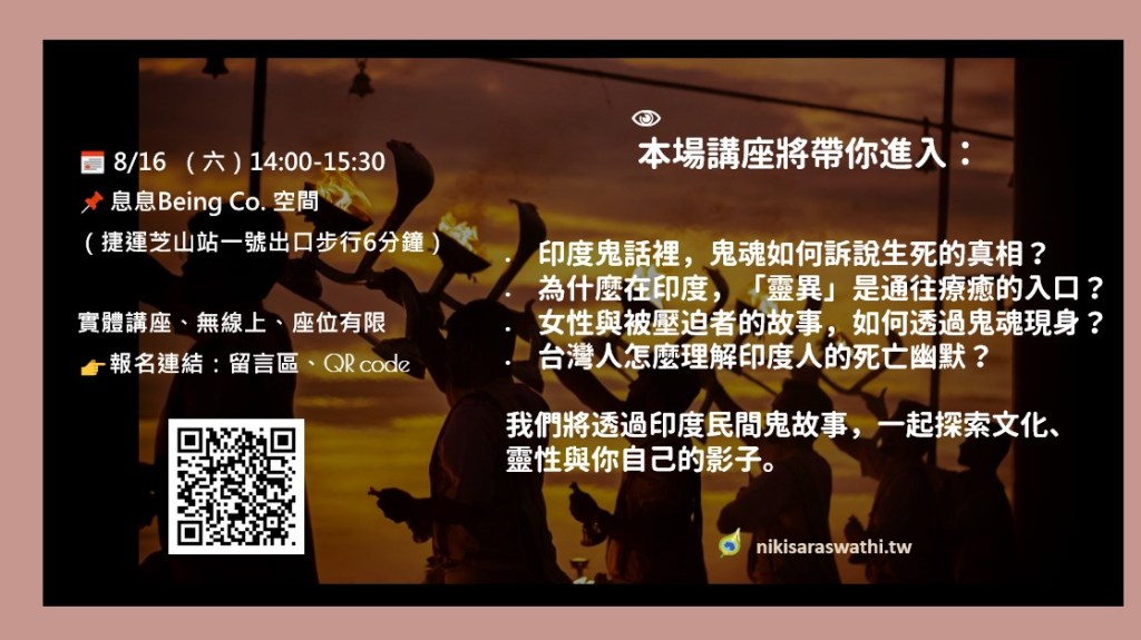 去年我曾受邀在台北市立圖書館講「印度鬼話」,原以為只是一次文化知識的分享,沒想到現場的朋友們聽得特別投入。有人問我一句,讓我印象深刻的話:
