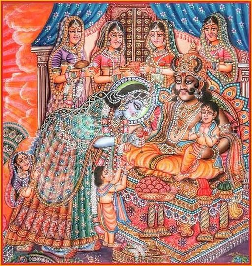 這份出於本能、毫無所求的善意,使那塊布料成為象徵情感連結的 Rakhi 護身繩,也播下了一份神聖承諾的種子。黑公主繫上的,不僅是布,更是信任與信仰。作為回報,克里希納允諾將一生守護她,維護她的尊嚴。