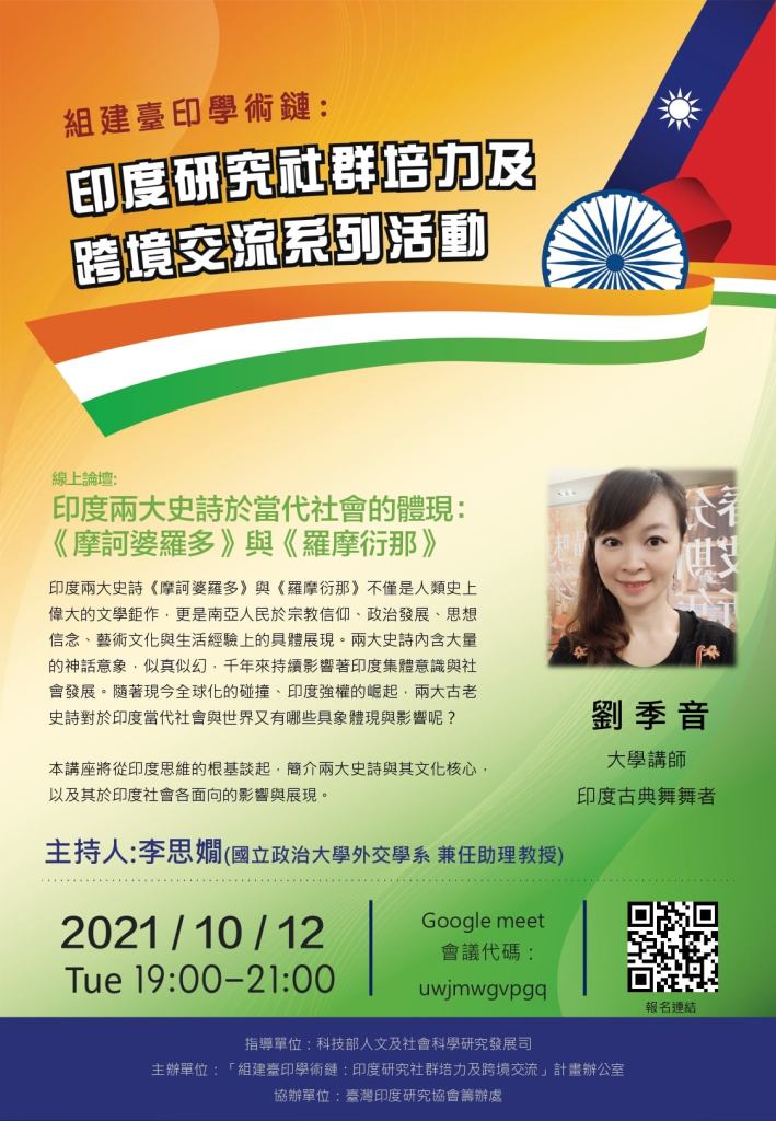 繼續閱讀 “【講座紀錄】東華大學線上講座『神廟、社群、銀幕:印度舞蹈中的視覺藝術與文化意識 』"2021.11.29 線上講座