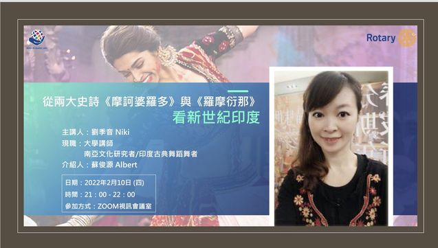 能有機會受邀台北福齡躍齡衛星扶輪社,源於去年為台北西區網路扶輪社演講後,沒想到相關的印度文化議題,燃燒起大家的興趣,因而於年初,進行了同樣的印度史詩文化講題。